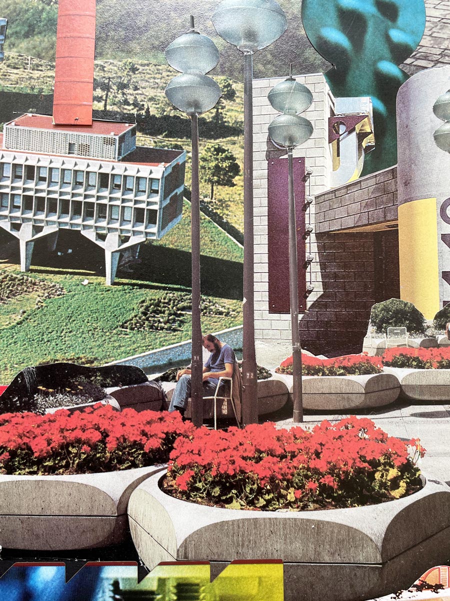 Le projet “Archigraphie” s’intéresse au potentiel graphique de l’architecture et de l’urbanisme, sous forme de collages, d’images imprimées ou encore de maquettes, avec un intérêt marqué pour les constructions colorées et géométriques, les foires universelles et les utopies architecturales en général.