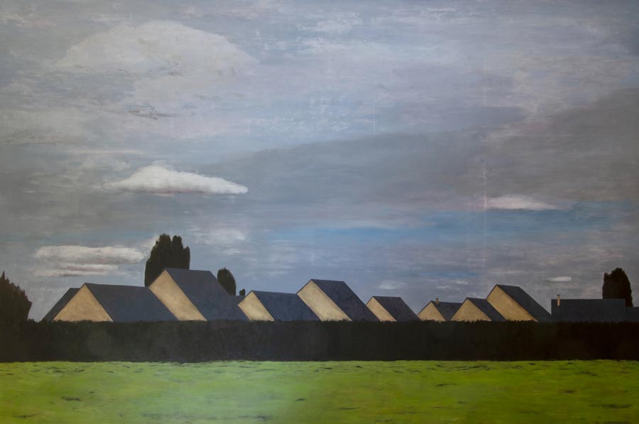 Influencé tant par la peinture classique de paysage que par l’esthétique involontaire des bords de route et zones périurbaines, Mathieu Arfouillaud a développé une pratique picturale autour du paysage vernaculaire. Progressivement, ces paysages sont devenus prétextes à expérimentation sur les médiums et supports à réflexions sur leurs modes de représentations, notamment à travers les écrans.